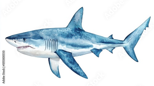 Blue shark swimming gracefully in ocean waters, showcasing its slender body and sharp features