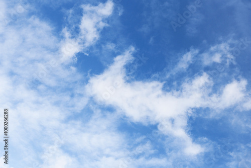 Blue sky background with soft clouds. Serene and relaxing nature scene. Perfect sky for a peaceful and calm atmosphere. Puffy white clouds. Tranquility and paradise.