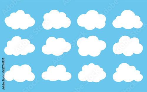 cloud, sky, background, cartoon, vector, cute, flat, design, graphic, illustration, weather, nature, day, season, simple, set, collection, element, heavenly, fluffy, beautiful, clean, environment, climate, abstract, pattern, icon, symbol, texture, art, wallpaper, blue, white, sunshine