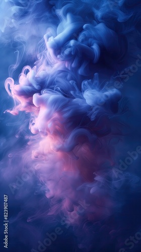Blue Sky with Purple Smoke Clouds Thick Fog Mist Nature Violet Gradient Abstract Artwork Background Concept, Web Graphic Wallpaper, Vertical 9:16 Digital Art Backdrop