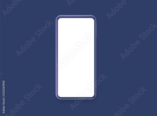 Blue smartphone with blank blue screen. Realistic vector mockup phone for visual ui app demonstration.