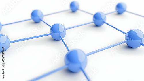 Blue Spheres Connected by Thin Lines on a Light Background