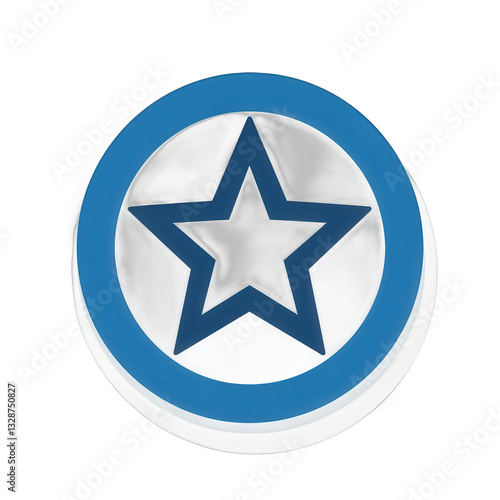 Blue star inside white ring with blue rim. white background. Graphic isolated on white or transparent png