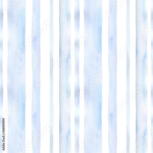 Blue stripes background watercolor. Seamless hand drawn vertical lines pattern for fabric texture, textile, wallpaper, home decor prints
