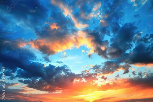 Blue Sunset Sky. Abstract Art Background of Beautiful Orange Sky with Bright Clouds