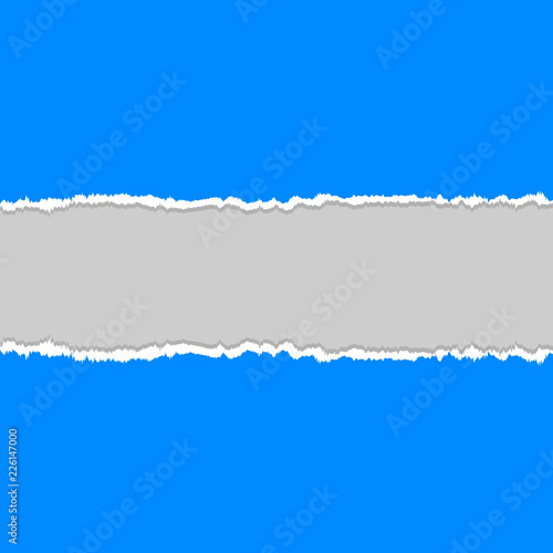 Blue torn paper on gray background with copy space. Vector illustration