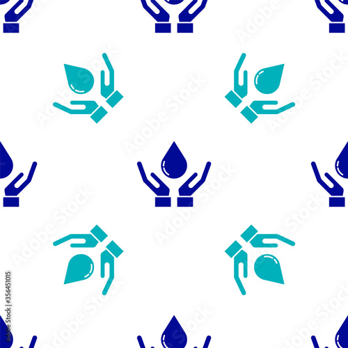 Blue Washing hands with soap icon isolated seamless pattern on white background. Washing hands with soap to prevent virus and bacteria. Vector Illustration.