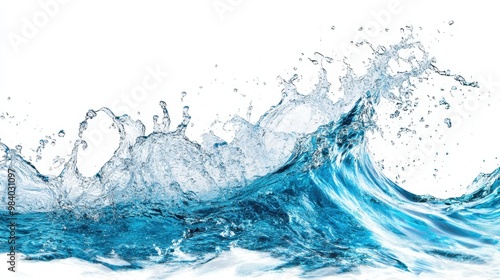 blue, water, wave, isolated, white, background, ripple, splash, creating, dynamic, refreshing, sense, motion, energy