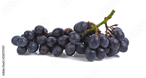 Blue wet Isabella grapes bunch isolated on white background