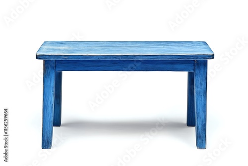 Blue wooden table with simple design, featuring four sturdy legs and a minimalist style