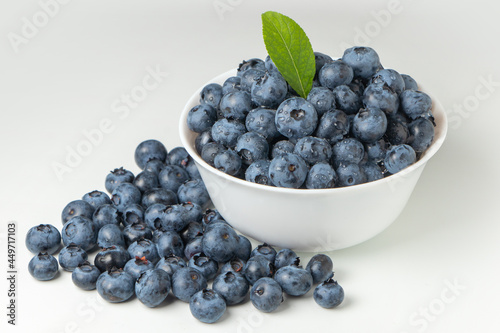 Blueberries in bowl isolated on white background