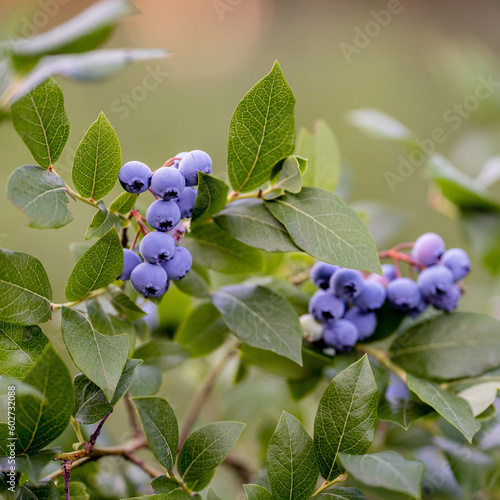 blueberries plant with fruits, organic plantation of blueberries