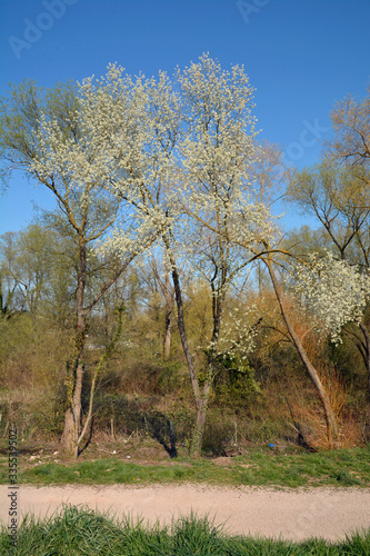 tree, flower, spring, spring, way, sunshine, countryside, nature, heaven, blue