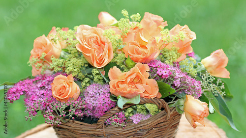decoration, floristic, floral arrangement, rose, garden, tender, pastel, orange, pink, green