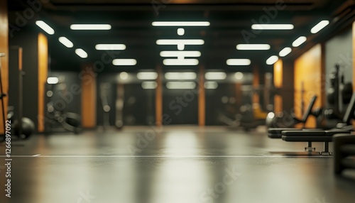 Blurred background of Empty gym, focus on equipment and interior design