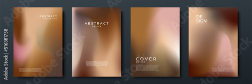 Blurred beige skin tone brown pastel backgrounds set with modern abstract blurred color gradient patterns. Smooth templates collection for brochures, posters, flyers and cards. Vector illustration.