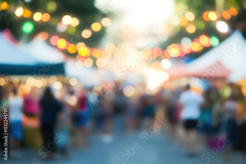 Blurred city street festival with tents and crowds