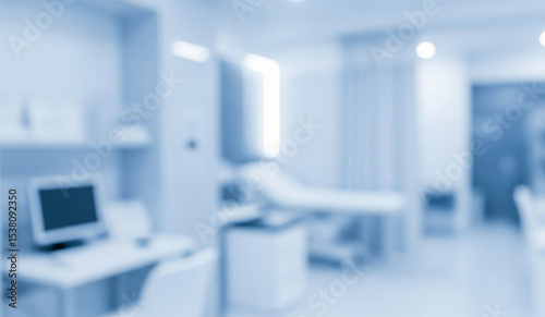 blurred, interior, room, medicals, exam, bed, computer, desk, health care, clinic, hospital, doctor, office, equipment, furniture, sterile, clean, blue, white, light, modern, empty, workspace, professional, health, treatment, medicine, background, blurry, sharpened, out of focus, nobody, indoor, technology, workplace, medical equipment, clinical, consultation, healthcare professional, medical practice, health care