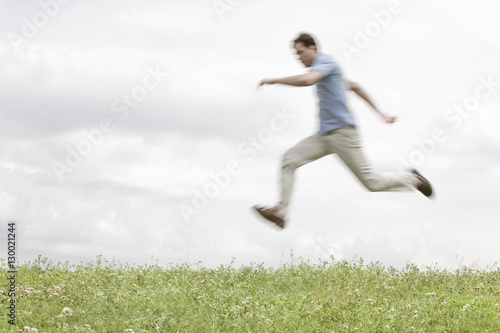 action, adult, casual clothes, cloud, daytime, full-length, grass, jumping, leisure, lifestyle, male, man, mid-air, motion, motion blur, 1, one person, outdoors, park, people, poland, running, half face, sky, vitality, warsaw, young adult