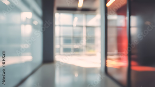 Blurred office interior background with doorway modern workspace contemporary design bright atmosphere