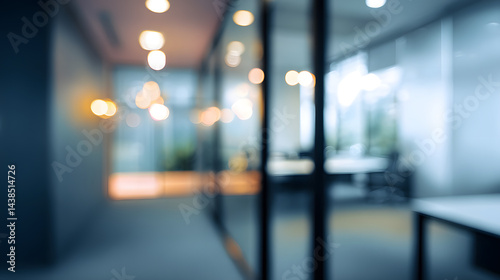 Blurred office interior with doorway modern workspace professional environment soft lighting