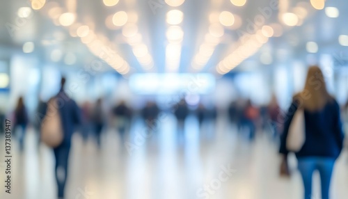 Blurred People Walking in Modern Office Building Hallway, Business and Commuting Concept