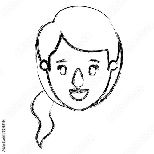 blurred silhouette caricature front view face woman with ponytail side hairstyle vector illustration