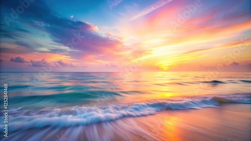 Blurred sunrise sky and ocean background with soft pastel colors and dreamy feeling for design projects, sunrise, sky, ocean