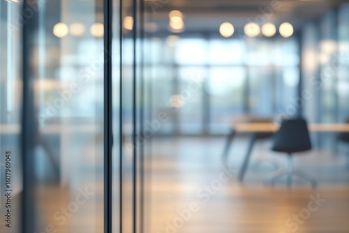 glasses, door, office, interior, blurred, modern, space, desk, chair, furniture, corporate, business, workplace, design, architecture, window, light, wood, floor, clean, minimalist, contemporary, indoor, background, abstract, structure, partition, meeting, room, empty, workspace, perspective, sharpened, transparency, panel, view