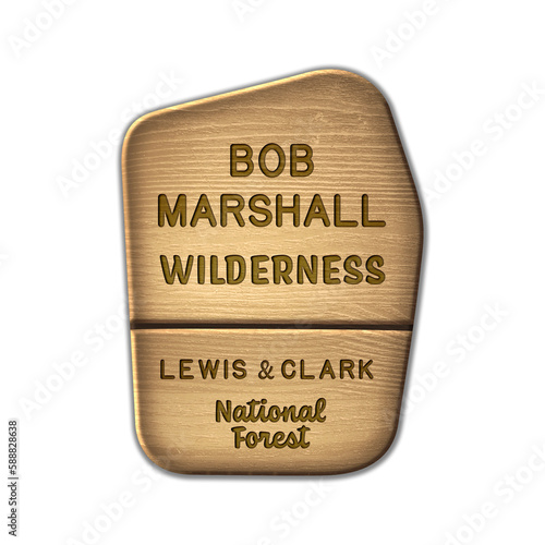 Bob Marshall National Wilderness, Lewis & Clark National Forest wood sign illustration on transparent background