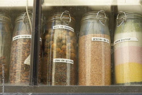 window, jar, jar, chili, nutmeg, flaxseed, clove, sugar, kitchen, condiment, food, decoration, window, conservation, collection