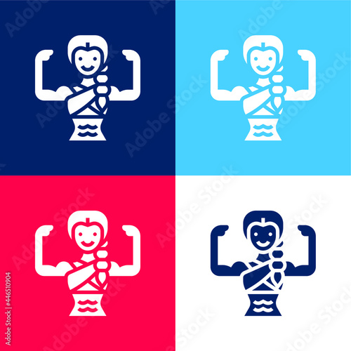 Bodybuilding blue and red four color minimal icon set