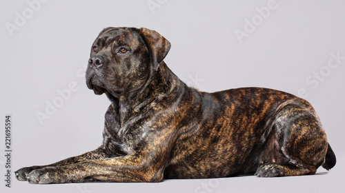 Boerboel Dog Isolated on Grey Background in studio