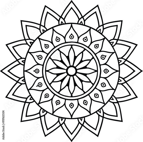 mandala, cute, black-and-white, pattern, design, white background, line art, minimalist, intricate pattern, floral pattern