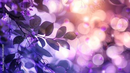 Bokeh background in nature with purple hues under tree canopy