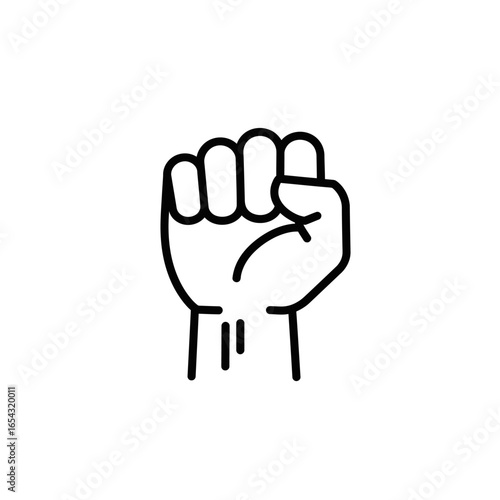 fist, clenched, hand, power, strength, protest, rebellion, oneness, solidarity, defiance, courage, determination, black, line art, graphic, illustration, symbol, icon, gesture, human, anatomy, arm, wrist, knuckle, bold, line, simple, minimal, monochrome, vector, design, element, concept, empowerment, activism, fight, freedom, revolution, resistance, right, equality, justice, peace, hope, change, movement, action, political, social