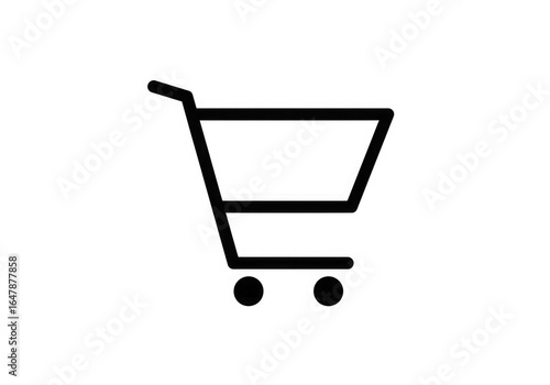 Bold black shopping cart icon on a clean white background, symbolizing commerce and retail transactions with modern simplicity