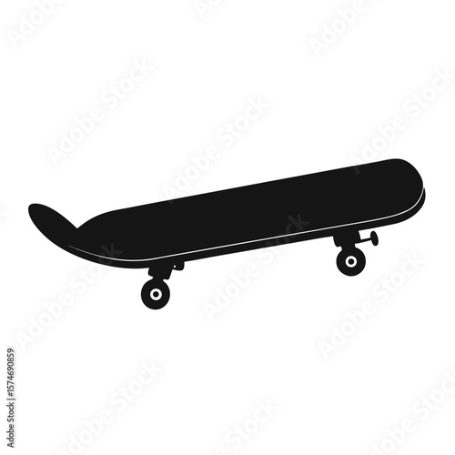 Bold black silhouette of a realistic skateboard perfect for sports and urban themes