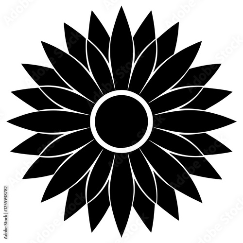 flower, sunflower, silhouette, black, flower petals, nature, graphic, design, floral, abstract, symmetric, pattern, decorative, art, bold, contrast, logotype, vector, modern, icon, aesthetic, shape, creative, intricate, radial, garden, bloom, organic, botanical, beauty, artistic, stylish, unique, summer, minimalistic, eye-catching, detailed, symmetry, illustration, outline, striking, elegant, natural