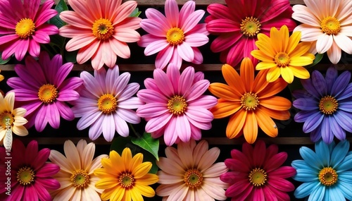 Bold blooms arranged in a repeating square lattice , shape, art, botanical