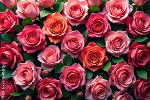 Bold blossoming roses arranged in square tessellation , print, seamless pattern, texture