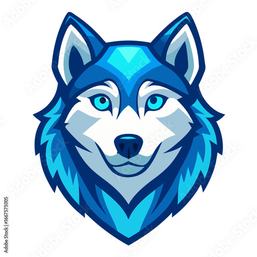 husky, dog, animal, wolf, mascot, logotype, design, blue, white, cyan, team, sport, gaming, character, illustration, icon, graphic, vector, art, concept, powerful, fierce, bold, modern, clean, style, artistic, creative, digital, symbol, identity, brand, company, business, apparel, emblem, badge, tribal, spirit, wild, nature, pet, canino, domestic, friends, companion, cute