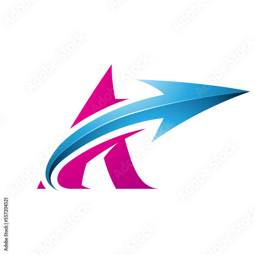 Bold Curvy Magenta Letter A with a Glossy Blue Arrow