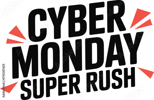 cyber, monday, super, rush, sale, shopping, online, discount, promotion, offer, deal, marketing, retail, commerce, digital, advertising, graphic, design, text, typography, bold, energetic, bright, red, black, modern, announcement, event, season, holiday, urgency, fast, speed
