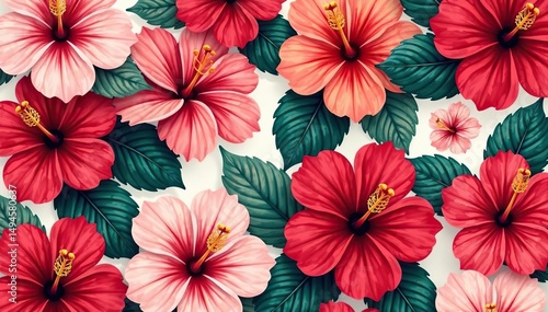 Bold hibiscus print, stylized petals, repeating motif , blossom, wallpaper