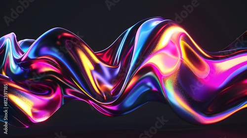 Bold holographic liquid metal shape black background