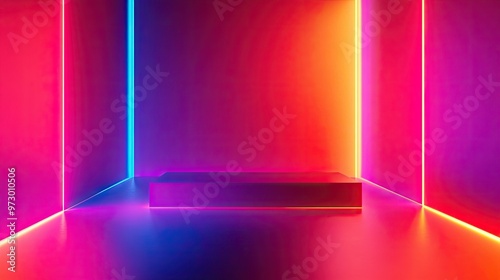 Bold neon gradient background with electric colors, ideal for tech product photography, blending vibrant hues for a futuristic and sleek presentation.