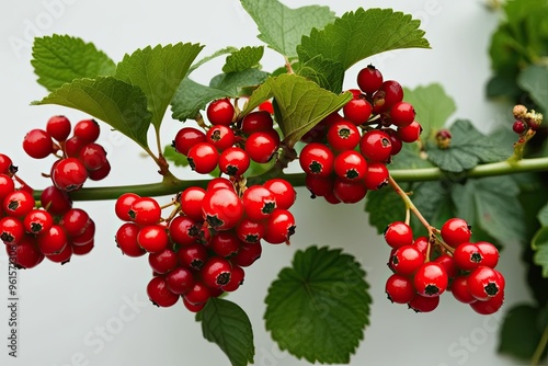 Bold Red Berries Clustered on a Vine Against a White Background