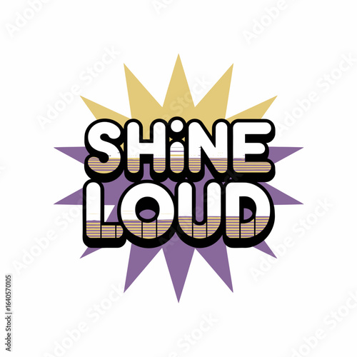 shine, loud, typography, graphic, design, text, quote, phrase, bold, retro, comic, book, art, starburst, burst, emblem, symbol, icon, element, illustration, motivational, inspiration, positive, energetic, vibrant, gradient, colours, style, vintage, pop, expressive, statement, creative, modern, contemporary, artistic, visual, typographic, word, lettering, font