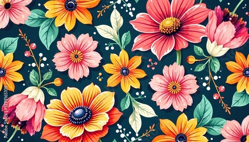 Bold, vibrant floral pattern for eye-catching flyers , yellow, flowers